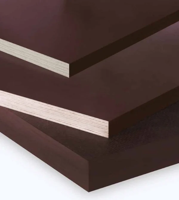 Tablero contrachapado recubierto con papel fenólico fundido en sus caras, núcleo de abedul europeo y cantos sellados con pintura antihumedad.